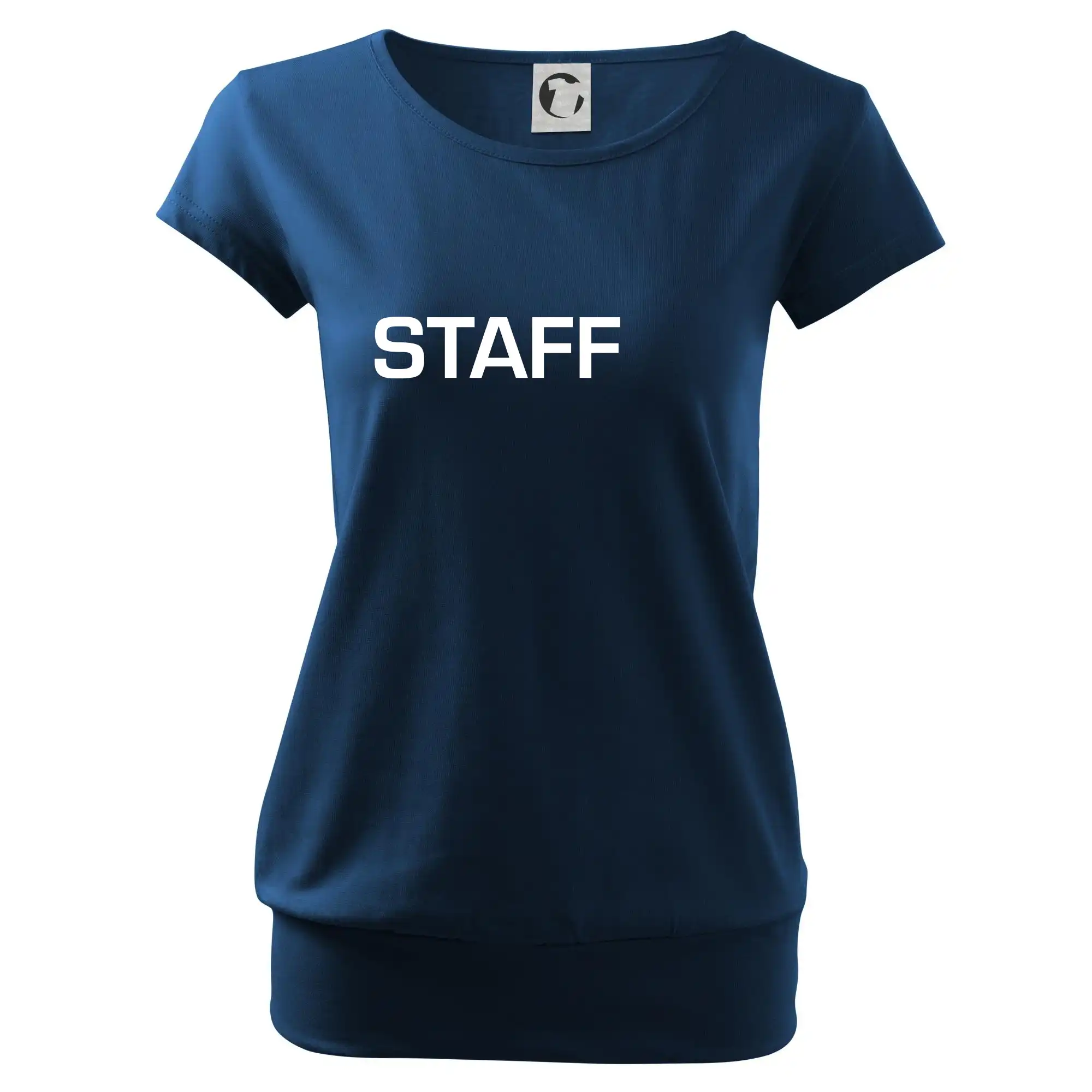 Trendové dámské triko s velmi krátkým rukávem, volnějšího střihu, v dolním kraji všité do širokého lemu. Kulatý průkrčník s úzkým lemem ze shodného materiálu.