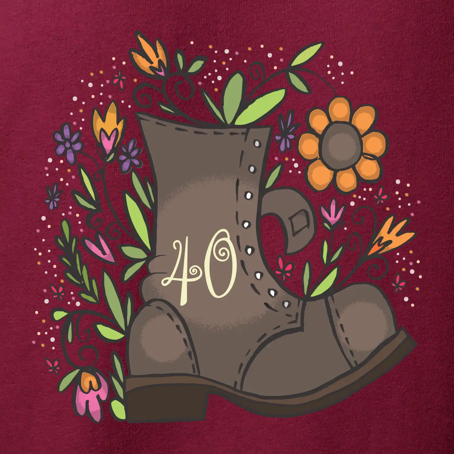 Narozeninové tričko jako dárek pro oslavence, který oslavuje jubileum krásných 40 let. Tričko nebo zástěra pro kuchaře, na kterém je číslovka 40 je vhodný dárek pro všechny, kteří ještě nepatří do starého železa. Jestli sháníš dárek k čtyřicetinám s botou na tričku tak u nás jsi správně.