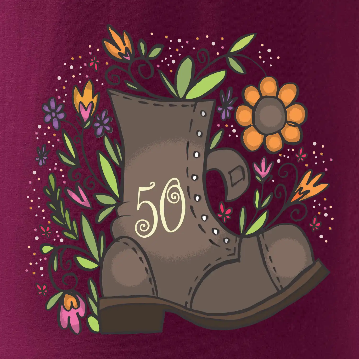 Narozeninové tričko jako dárek pro oslavence, který oslavuje jubileum krásných 50 let. Tričko nebo zástěra pro kuchaře, na kterém je číslovka 50 je vhodný dárek pro všechny, kteří ještě nepatří do starého železa. Jestli sháníš dárek k padesátinám s botou na tričku tak u nás jsi správně.