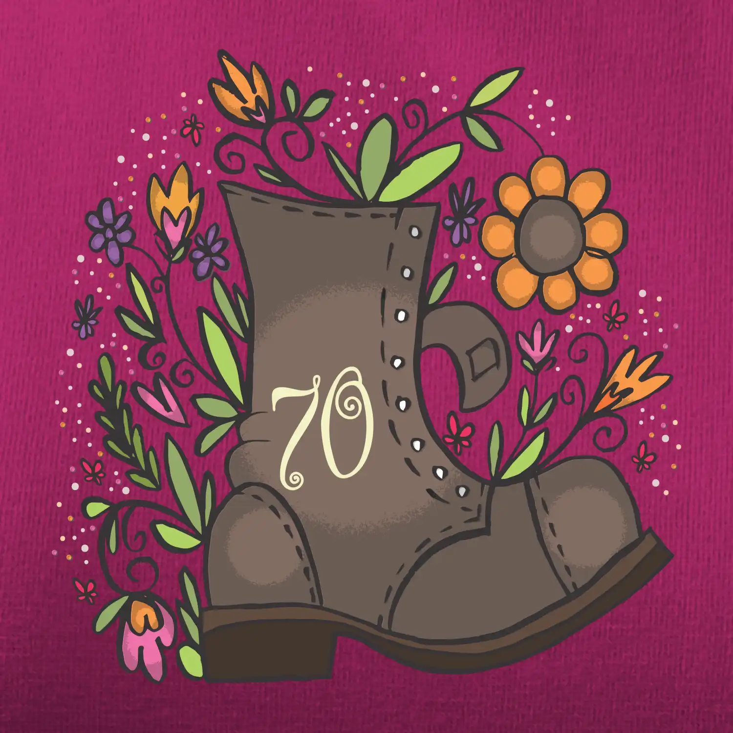 Narozeninové tričko jako dárek pro oslavence, který oslavuje jubileum krásných 70 let. Tričko nebo zástěra pro kuchaře, na kterém je číslovka 70 je vhodný dárek pro všechny, kteří ještě nepatří do starého železa. Jestli sháníš dárek k sedmdesátinám s botou na tričku tak u nás jsi správně.