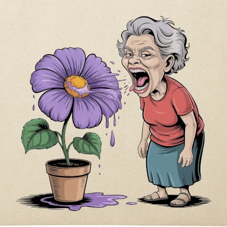 Stará paní plive na fialu