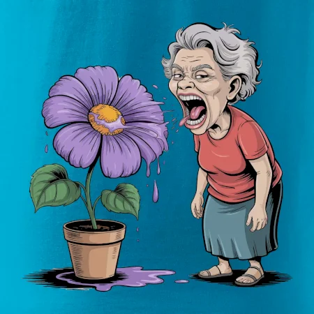 Stará paní plive na fialu