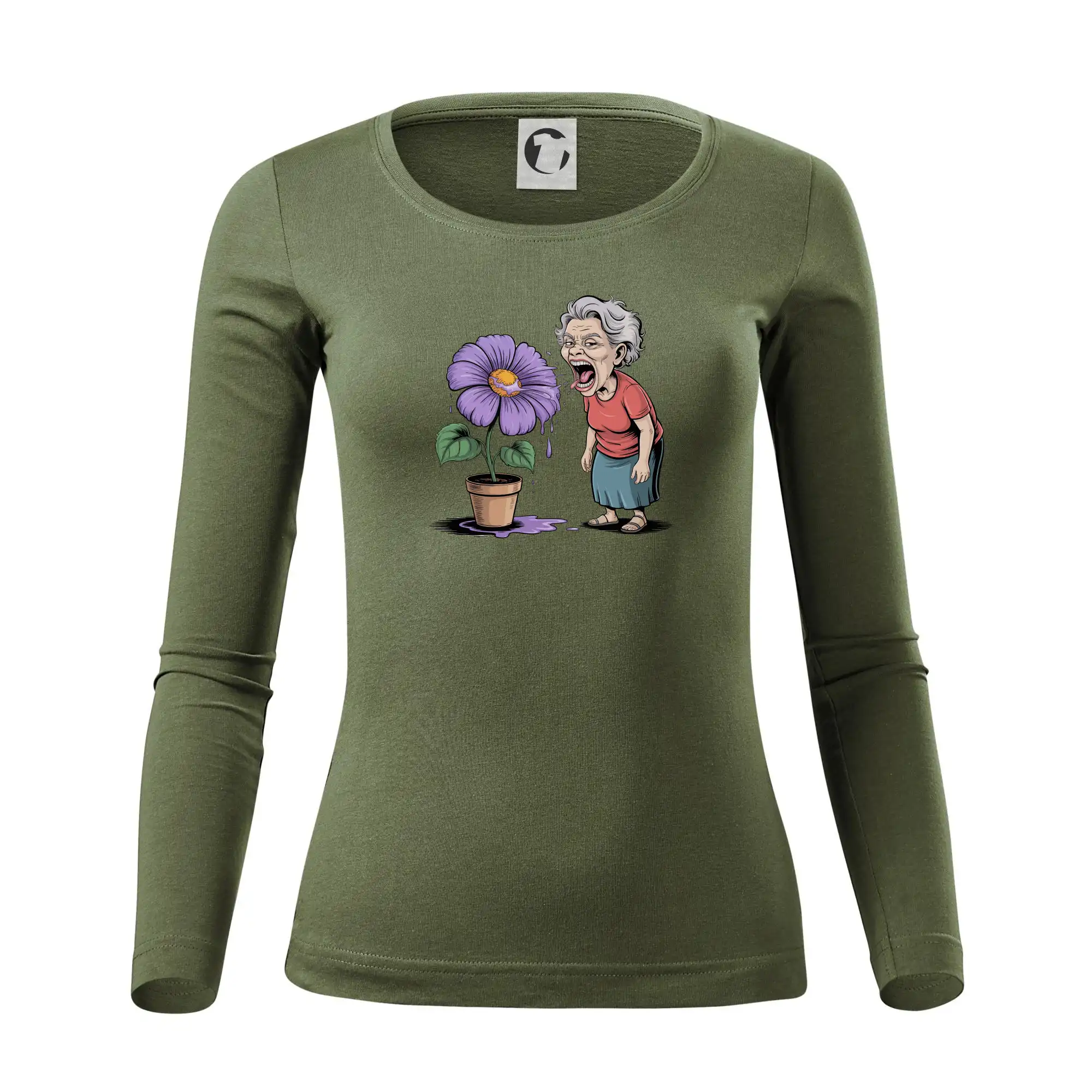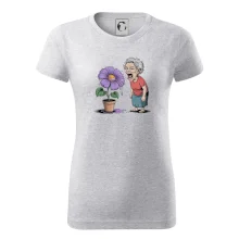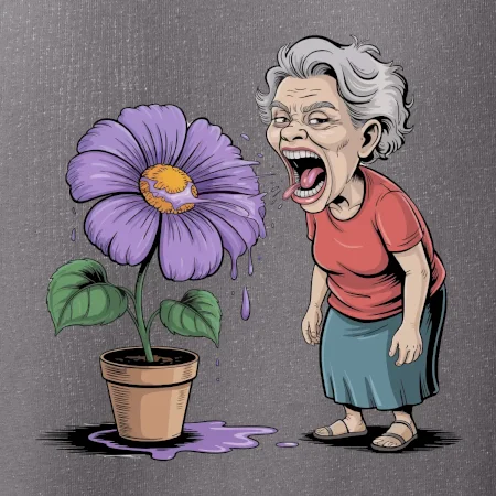 Stará paní plive na fialu