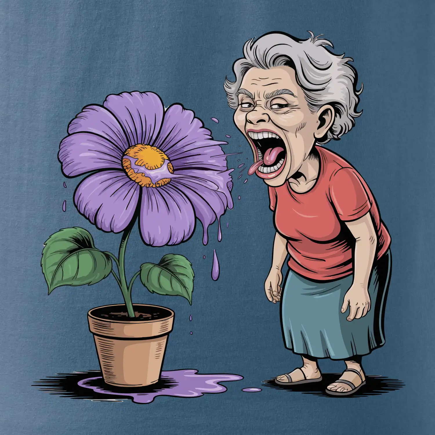 Stará paní plive na fialu