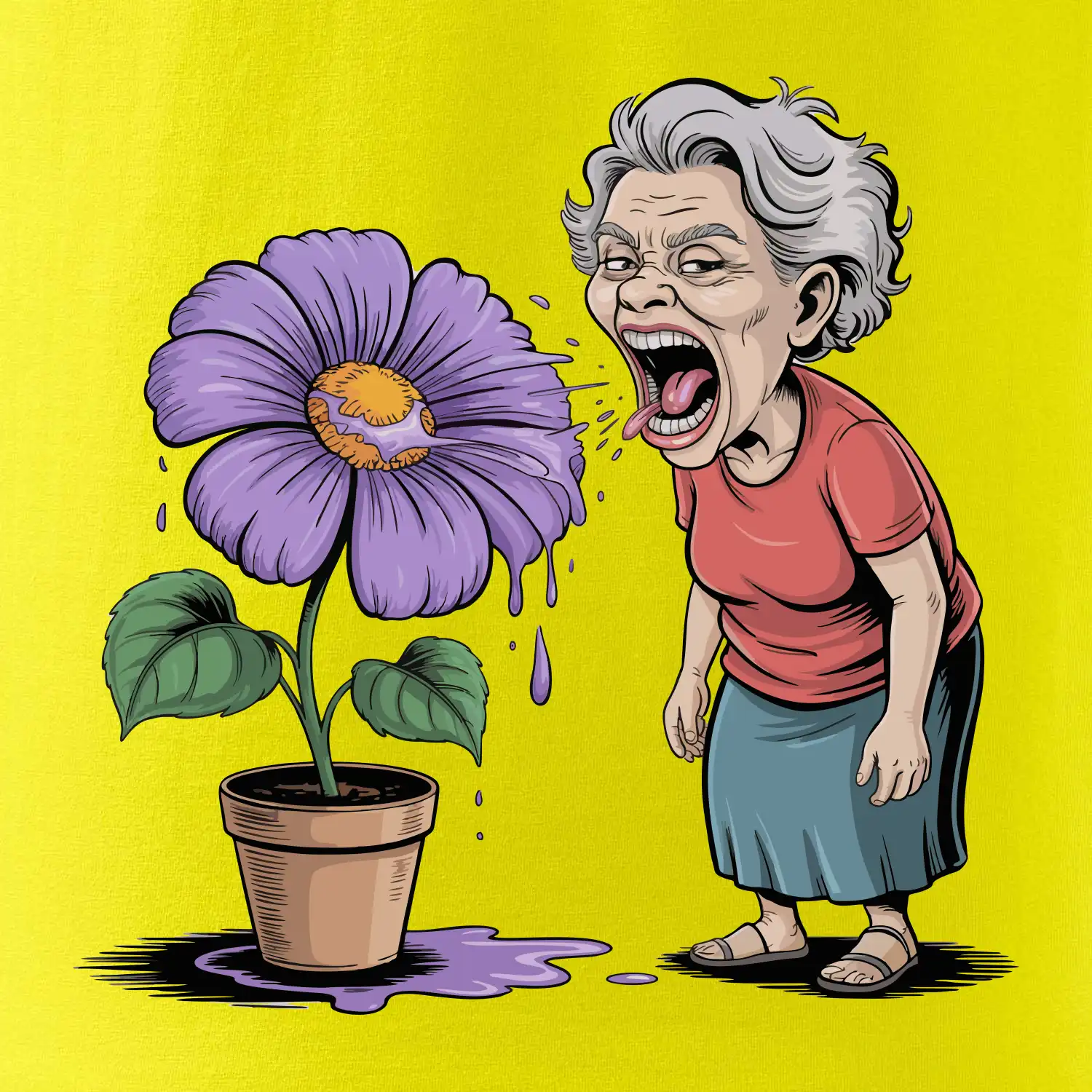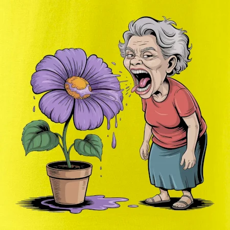 Stará paní plive na fialu