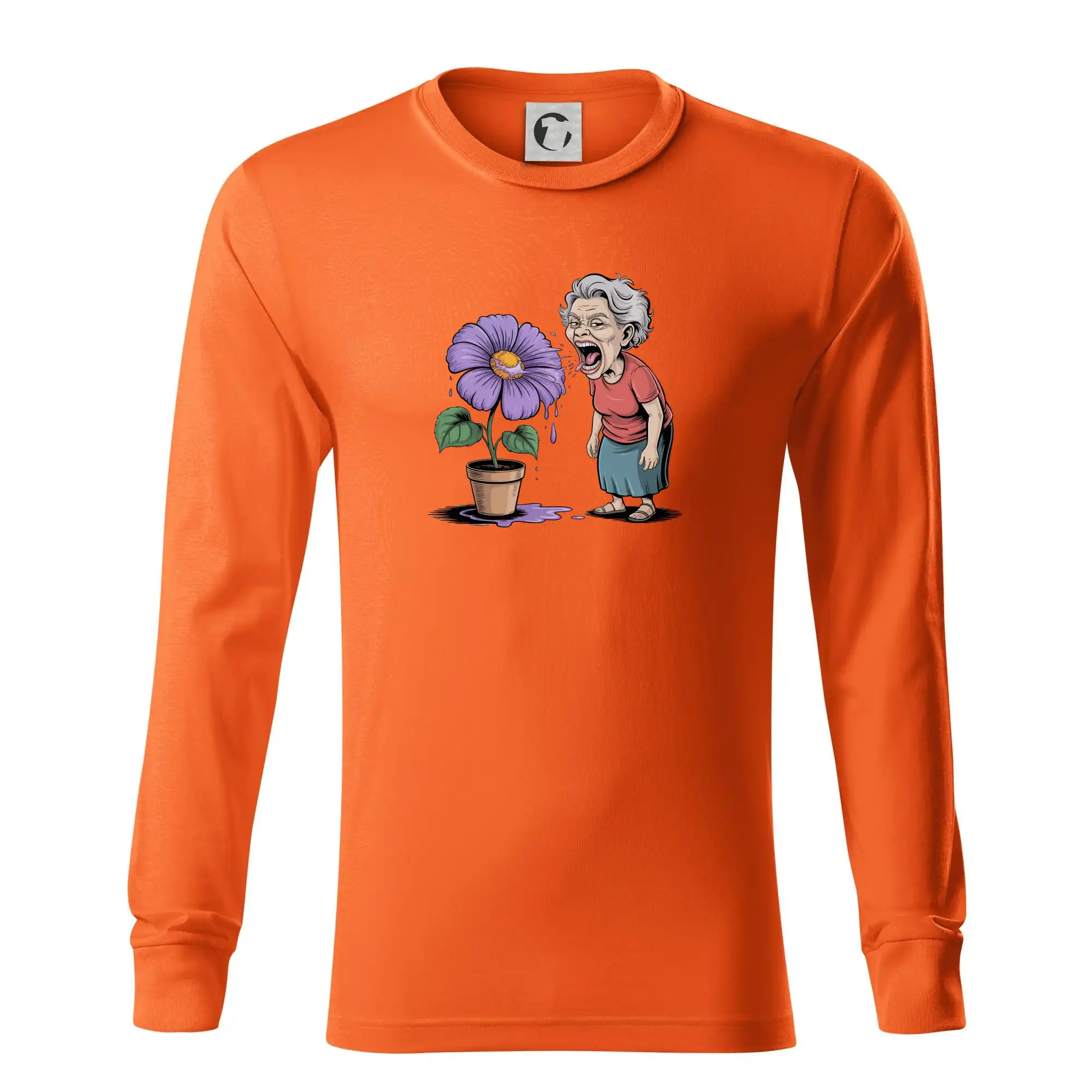 Stará paní plive na fialu