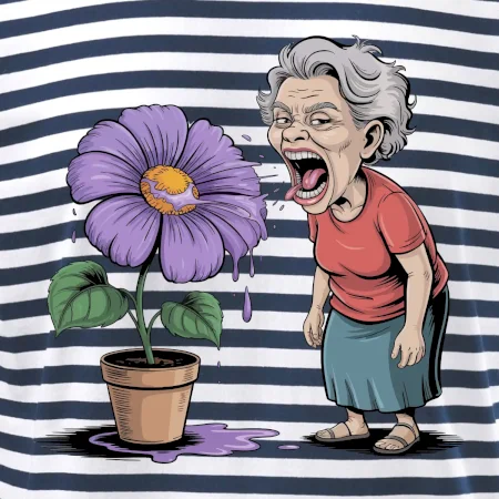 Stará paní plive na fialu