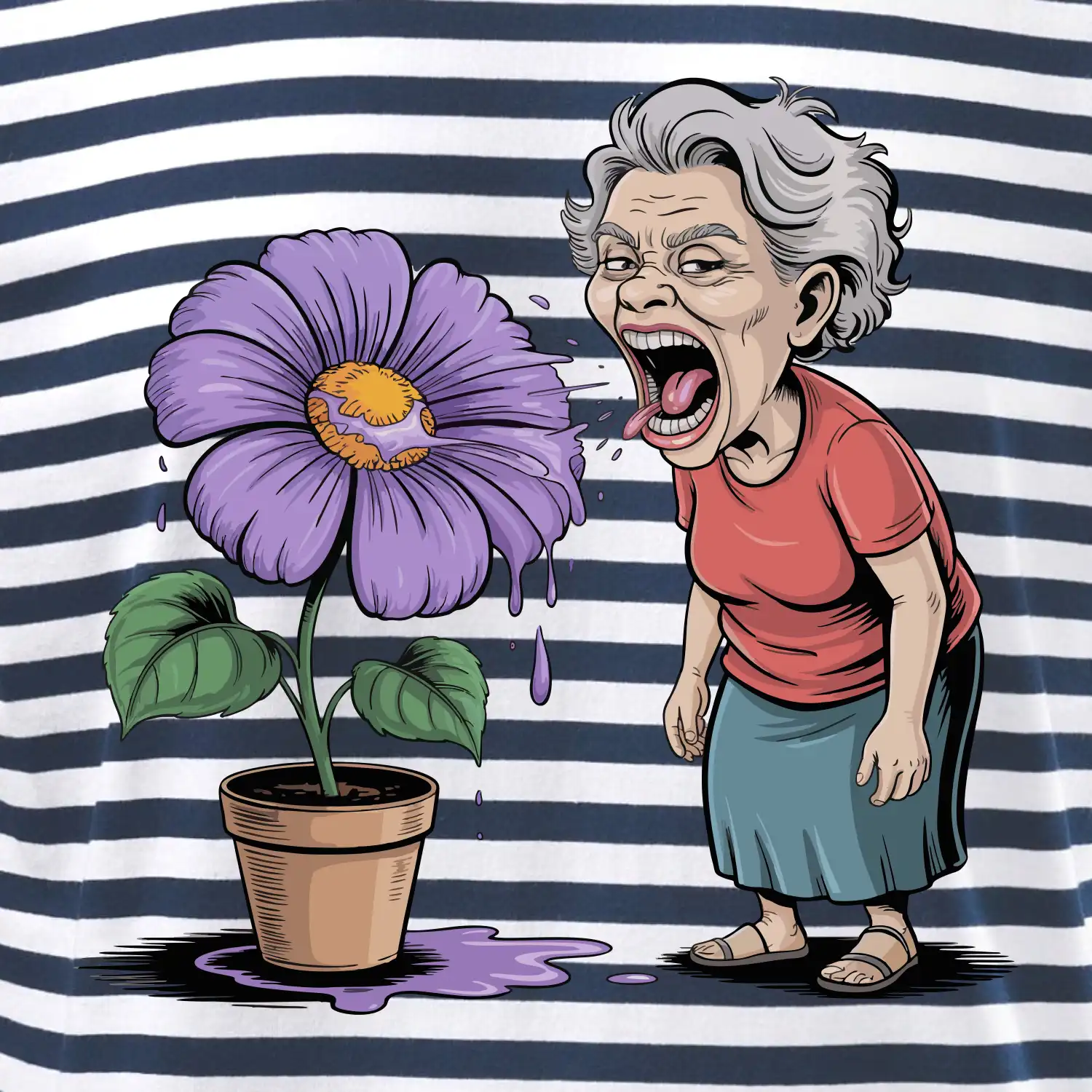 Stará paní plive na fialu