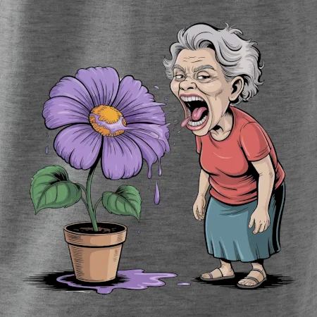 Stará paní plive na fialu