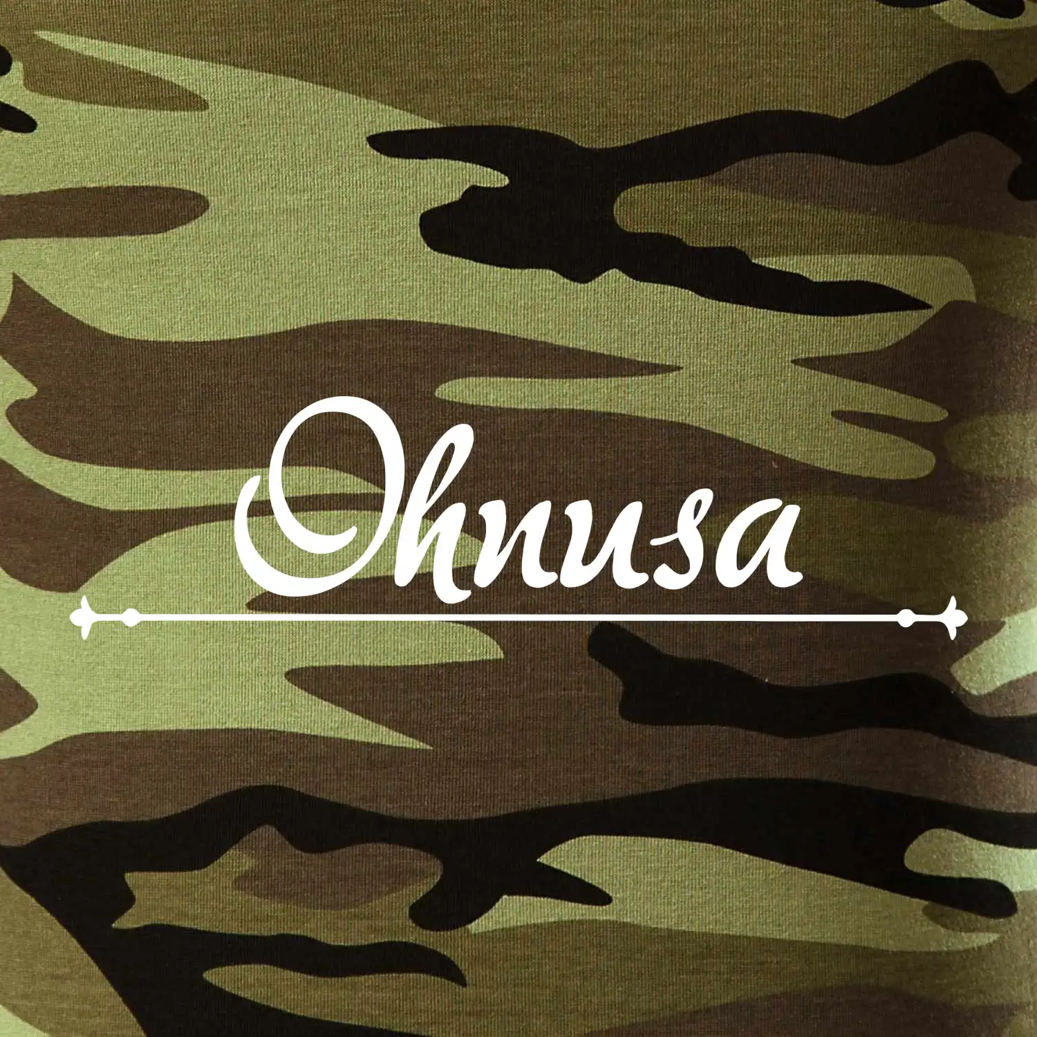 Tričko střední gramáže v barvách camouflage. Střih s bočními švy. Lem průkrčníku ze žebrového úpletu s přídavkem 5 % elastanu. Vnitřní část zadního průkrčníku začištěna páskou v barvě camouflage.
