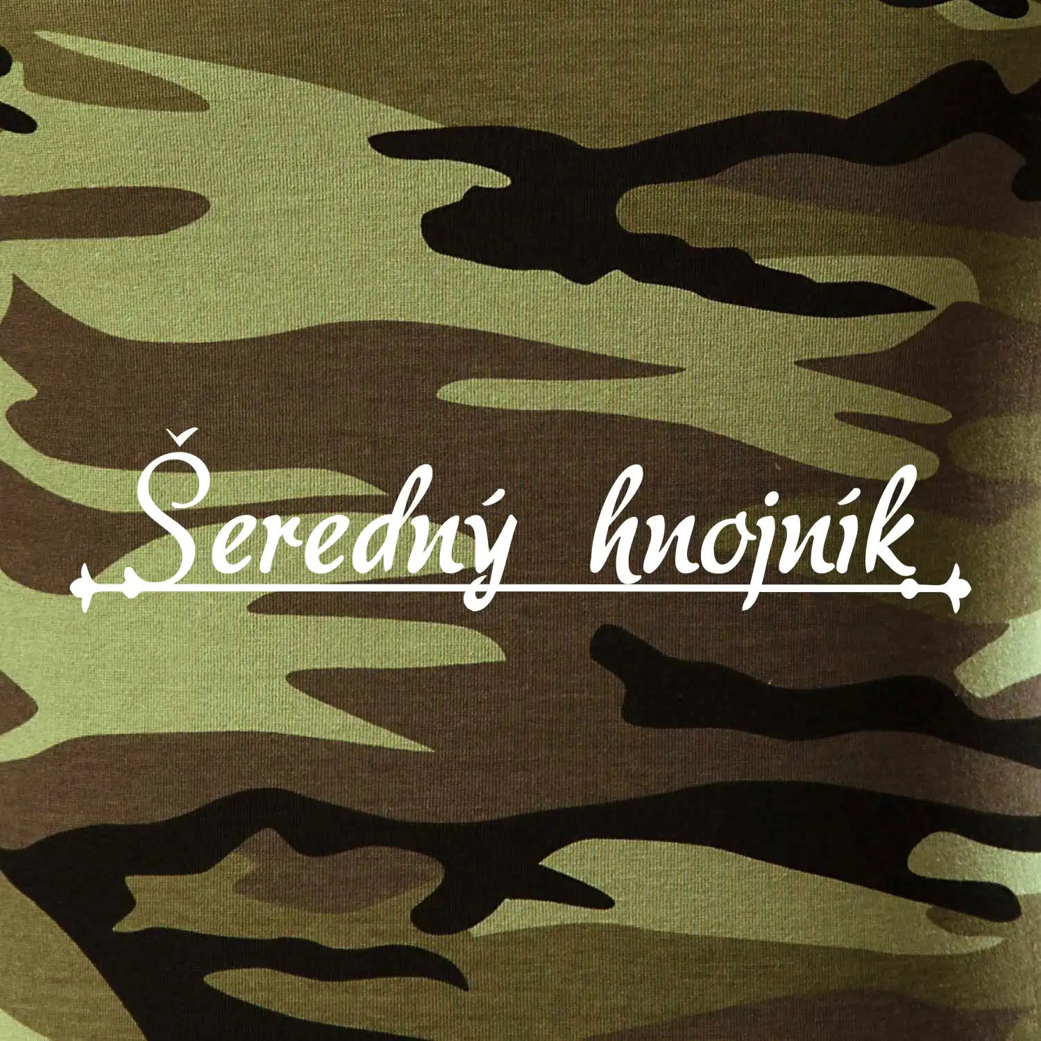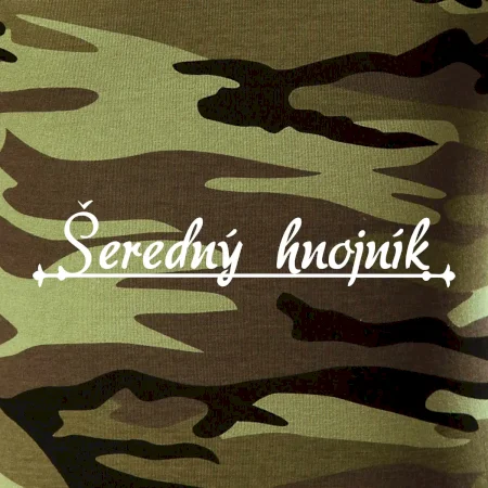 Tričko střední gramáže v barvách camouflage. Střih s bočními švy. Lem průkrčníku ze žebrového úpletu s přídavkem 5 % elastanu. Vnitřní část zadního průkrčníku začištěna páskou v barvě camouflage.