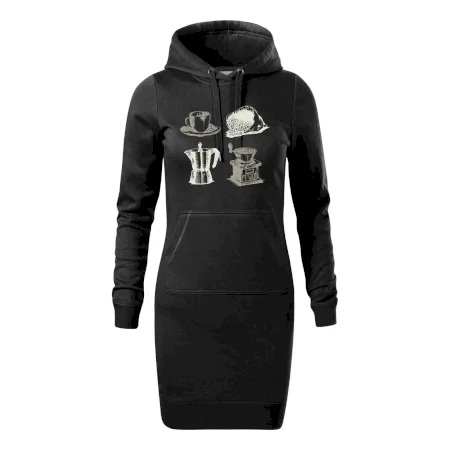 Dámské mikinové šaty MALFINI Snap 419 jsou ideální volbou pro ženy, které hledají pohodlný a stylový kousek pro volný čas nebo každodenní nošení. Lehce vypasovaný střih s bočními švy podtrhuje ženskou siluetu, zatímco kapuce s podšívkou a stahovací šňůrkou dodává ležérní vzhled.