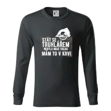 Kvalitní přiléhavé pánské triko s dlouhým rukávem z hladkého úpletu. Módní úzký lem u krku v barvě trika.