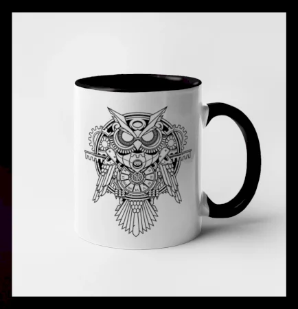 Steampunk sova černobílá