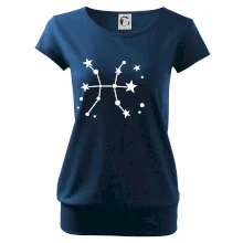 Trendové dámské triko s velmi krátkým rukávem, volnějšího střihu, v dolním kraji všité do širokého lemu. Kulatý průkrčník s úzkým lemem ze shodného materiálu.