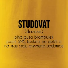 Studovat neboli sedět doma, cpát se jídlem, koukat na seriál, psát SMS a na kraji stolu leží otevřená učebnice. Taky rádi předstíráte studium?