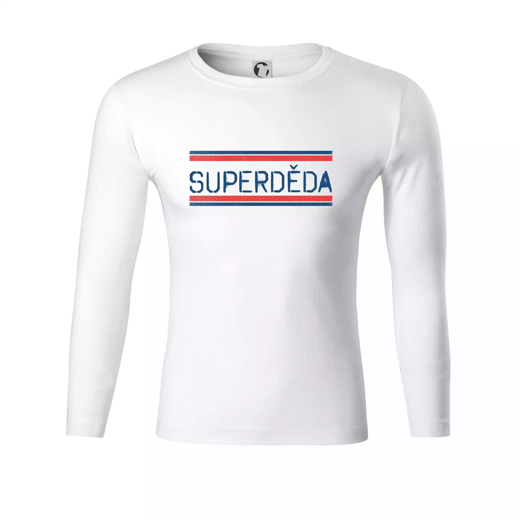 SUPERDĚDA nápis modro červený
