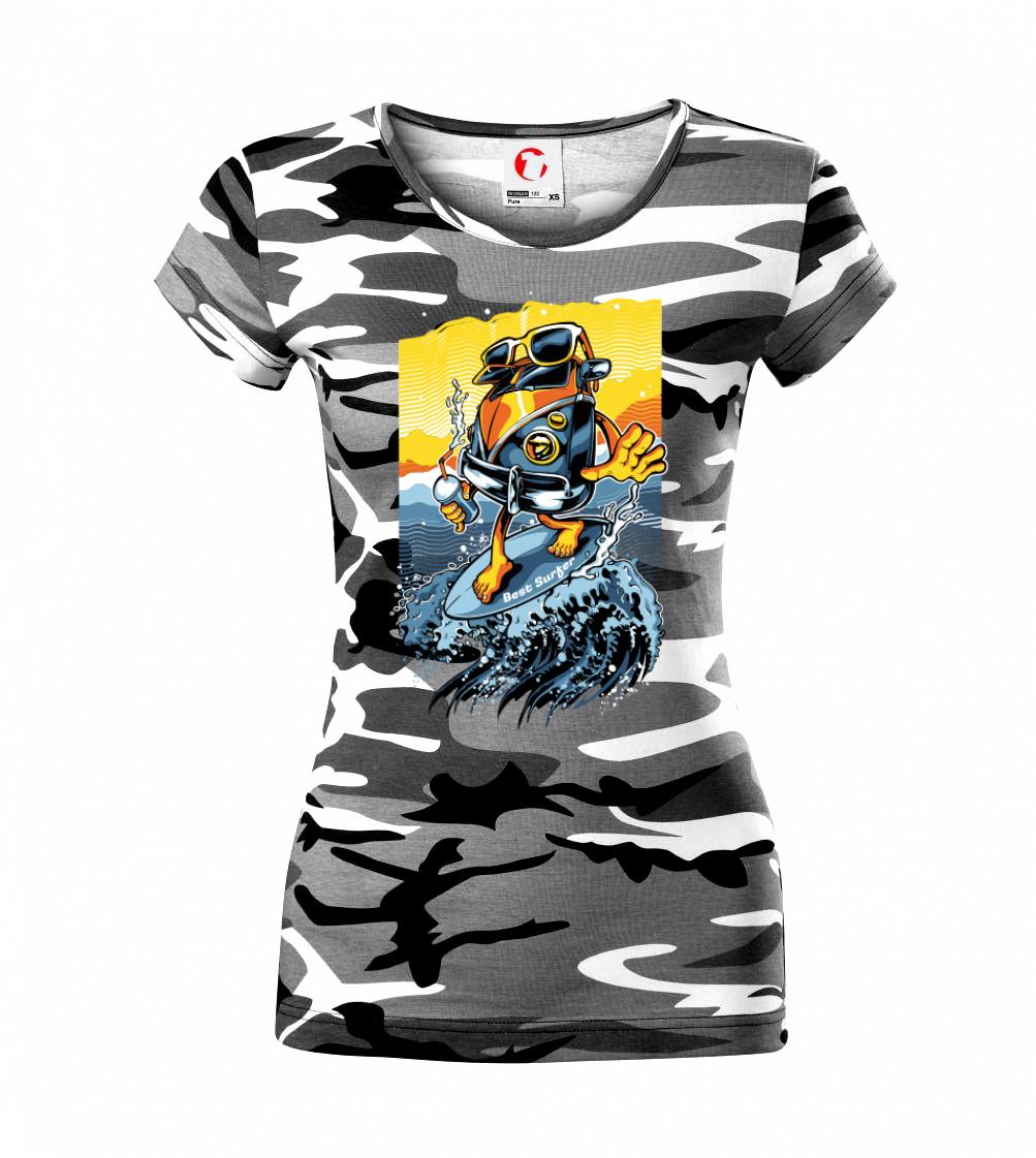 Triko pro surfaře, kteří se nebojí vzít obytňák a vyrazit směr moře. S tímhle trikem ti při surfování neunikne žádná vlna. Surfařské triko je vhodný dárek pro surfaře.