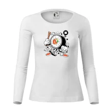 Tolerantnější vypasování dámského střihu, který je vhodný pro všechny typy postavy, ideální délka rukávů a konzervativní výstřih zakončený žebrováním, které skvěle drží tvar.
