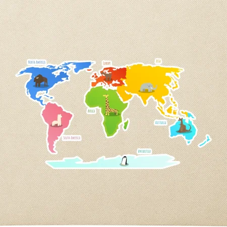 Světové kontinenty s názvy a zvířátky