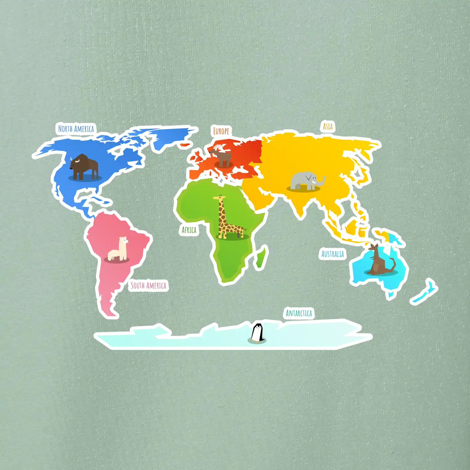 Světové kontinenty s názvy a zvířátky