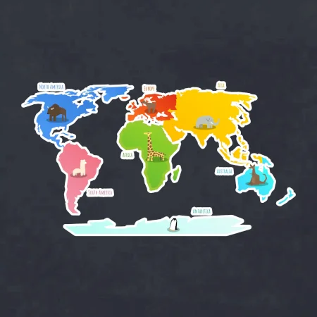Světové kontinenty s názvy a zvířátky