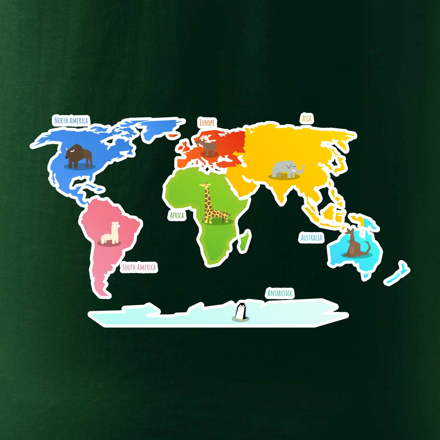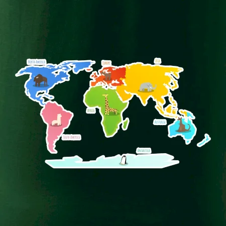 Světové kontinenty s názvy a zvířátky