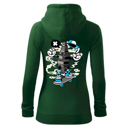 Dámská mikina MALFINI Trendy Zipper 411 je dokonalým spojením moderního vzhledu a každodenní praktičnosti. Její lehce vypasovaný střih s bočními švy zvýrazňuje ženskou siluetu, zatímco celopropínací zip a kapuce se stahovací šňůrkou dodávají ležérní nádech. Nakládané kapsy typu „klokanka“ nabízejí dostatek prostoru pro drobnosti. Materiál s počesanou vnitřní stranou poskytuje měkkost a teplo díky směsi bavlny a polyesteru.