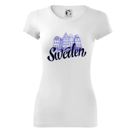 Triko s anglickým nápisem Švédsko a domy je vhodný dárek pro každého, kdo je pravý milovník cestování. Ten, kdo miluje severské země, by měl mít triko pro cestovatele ve svém šatníku.