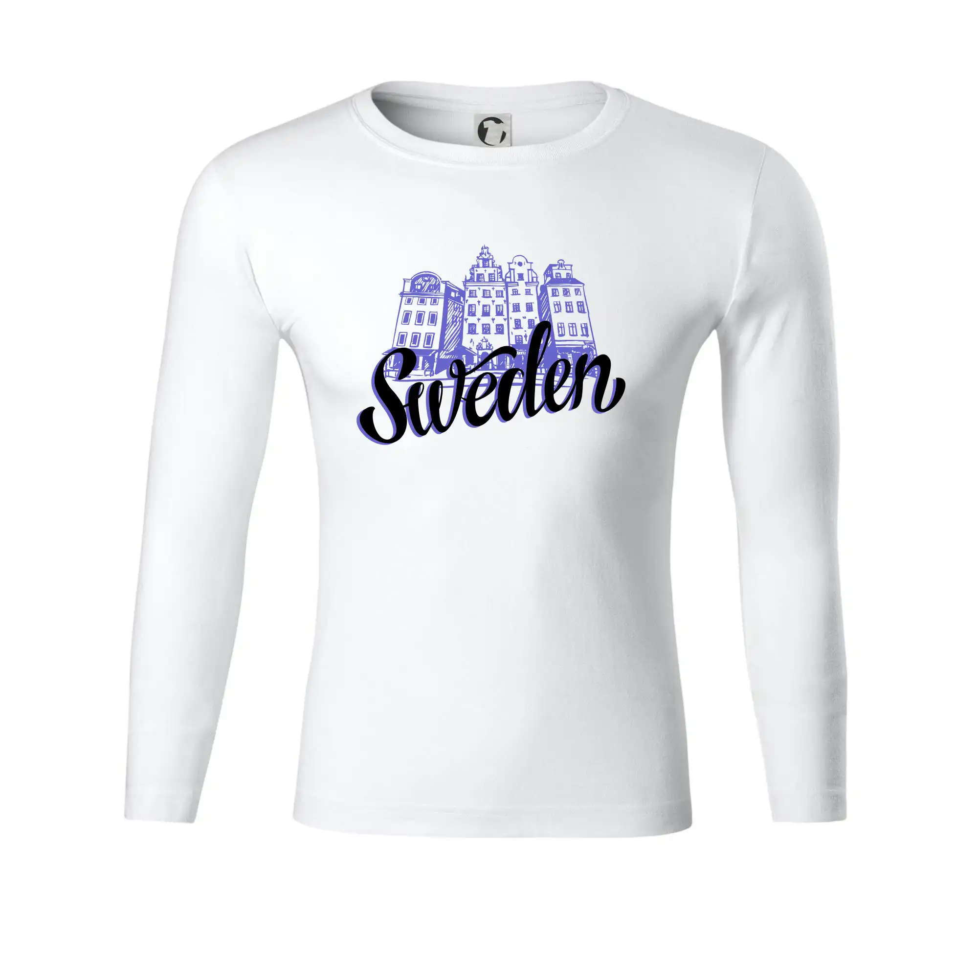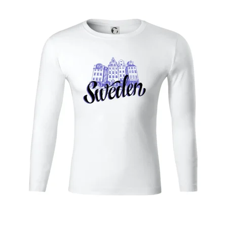Triko s anglickým nápisem Švédsko a domy je vhodný dárek pro každého, kdo je pravý milovník cestování. Ten, kdo miluje severské země, by měl mít triko pro cestovatele ve svém šatníku.