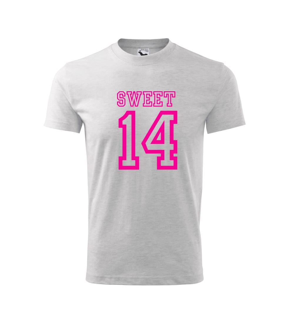 Narozeninové triko pro holku, která slaví 14 narozeniny. Triko pro oslavenkyni, která slaví jubileum 14 let. Dárek pro holku k čtrnáctinám.