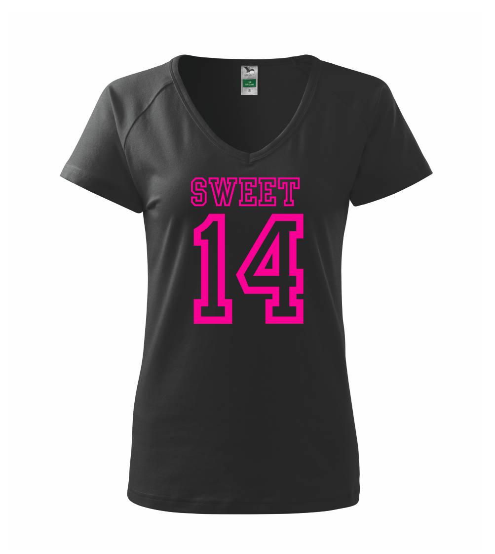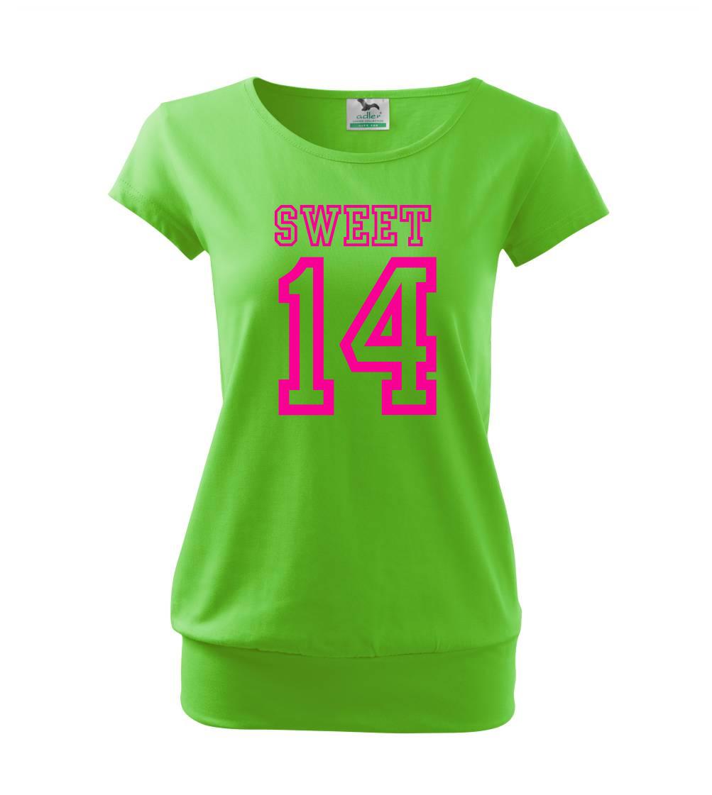Narozeninové triko pro holku, která slaví 14 narozeniny. Triko pro oslavenkyni, která slaví jubileum 14 let. Dárek pro holku k čtrnáctinám.