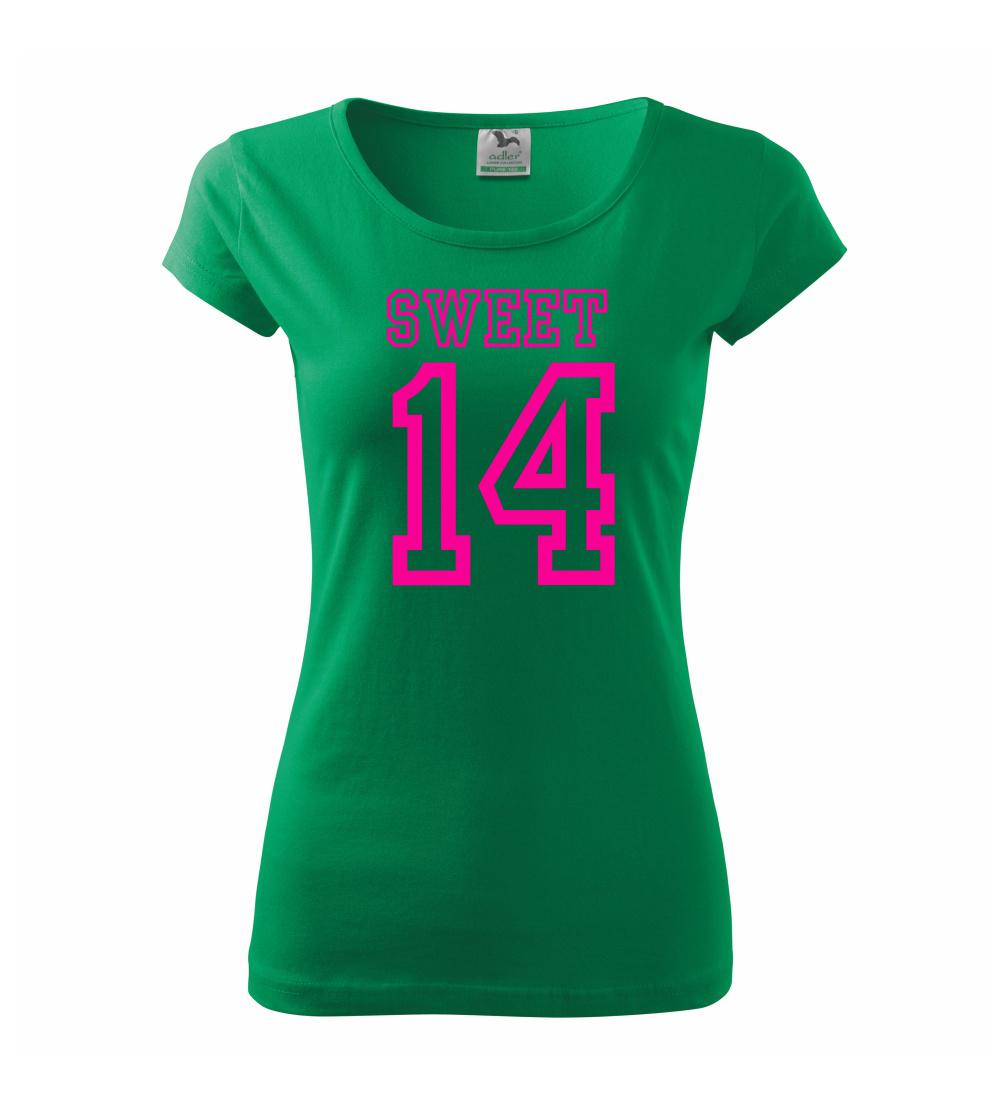 Narozeninové triko pro holku, která slaví 14 narozeniny. Triko pro oslavenkyni, která slaví jubileum 14 let. Dárek pro holku k čtrnáctinám.