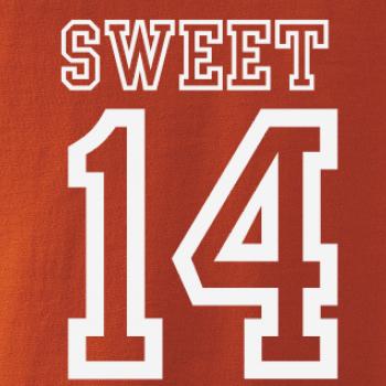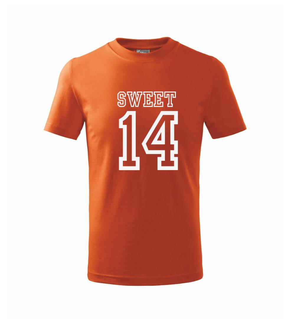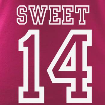 Narozeninové triko pro holku, která slaví 14 narozeniny. Triko pro oslavenkyni, která slaví jubileum 14 let. Dárek pro holku k čtrnáctinám.