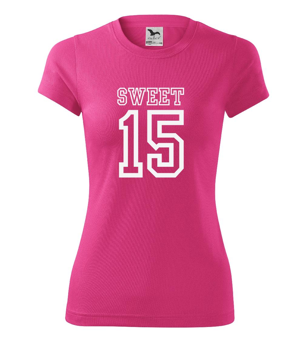 Narozeninové triko pro holku, která slaví 15 narozeniny. Triko pro oslavenkyni, která slaví jubileum 15 let. Dárek pro holku k patnáctinám.