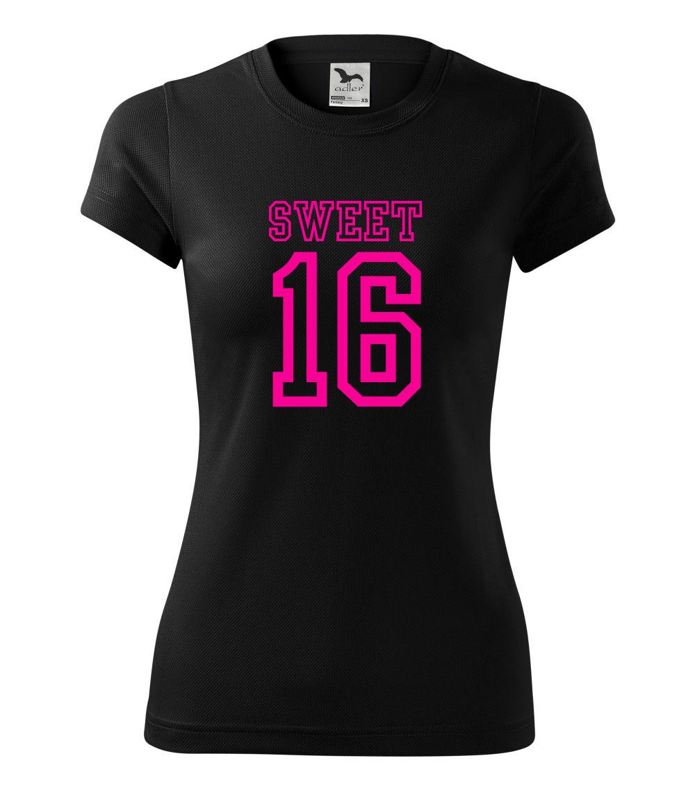 Narozeninové triko pro holku, která slaví 16 narozeniny. Triko pro oslavenkyni, která slaví jubileum 16 let. Dárek pro holku k šestnáctinám.