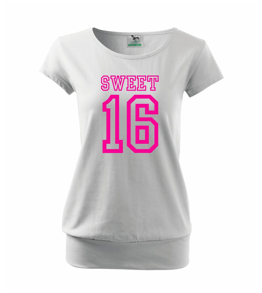 Narozeninové triko pro holku, která slaví 16 narozeniny. Triko pro oslavenkyni, která slaví jubileum 16 let. Dárek pro holku k šestnáctinám.