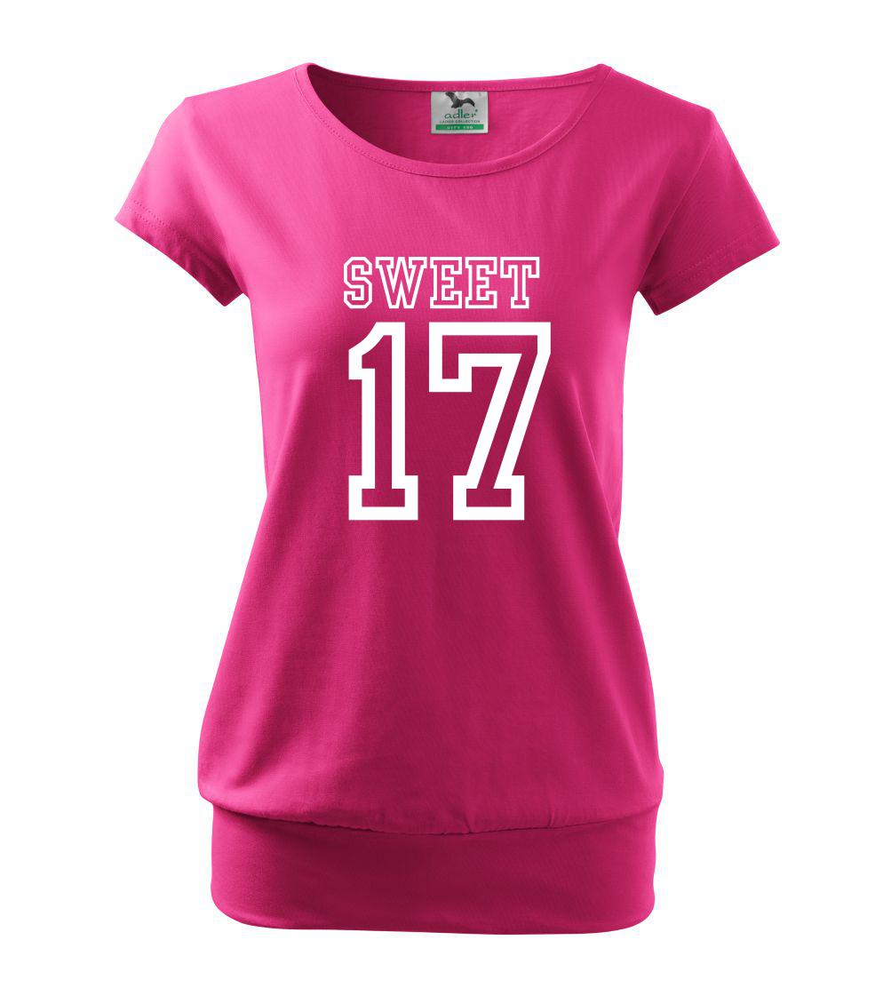 Narozeninové triko pro holku, která slaví 17 narozeniny. Triko pro oslavenkyni, která slaví jubileum 17 let. Dárek pro holku k sedmnáctinám.