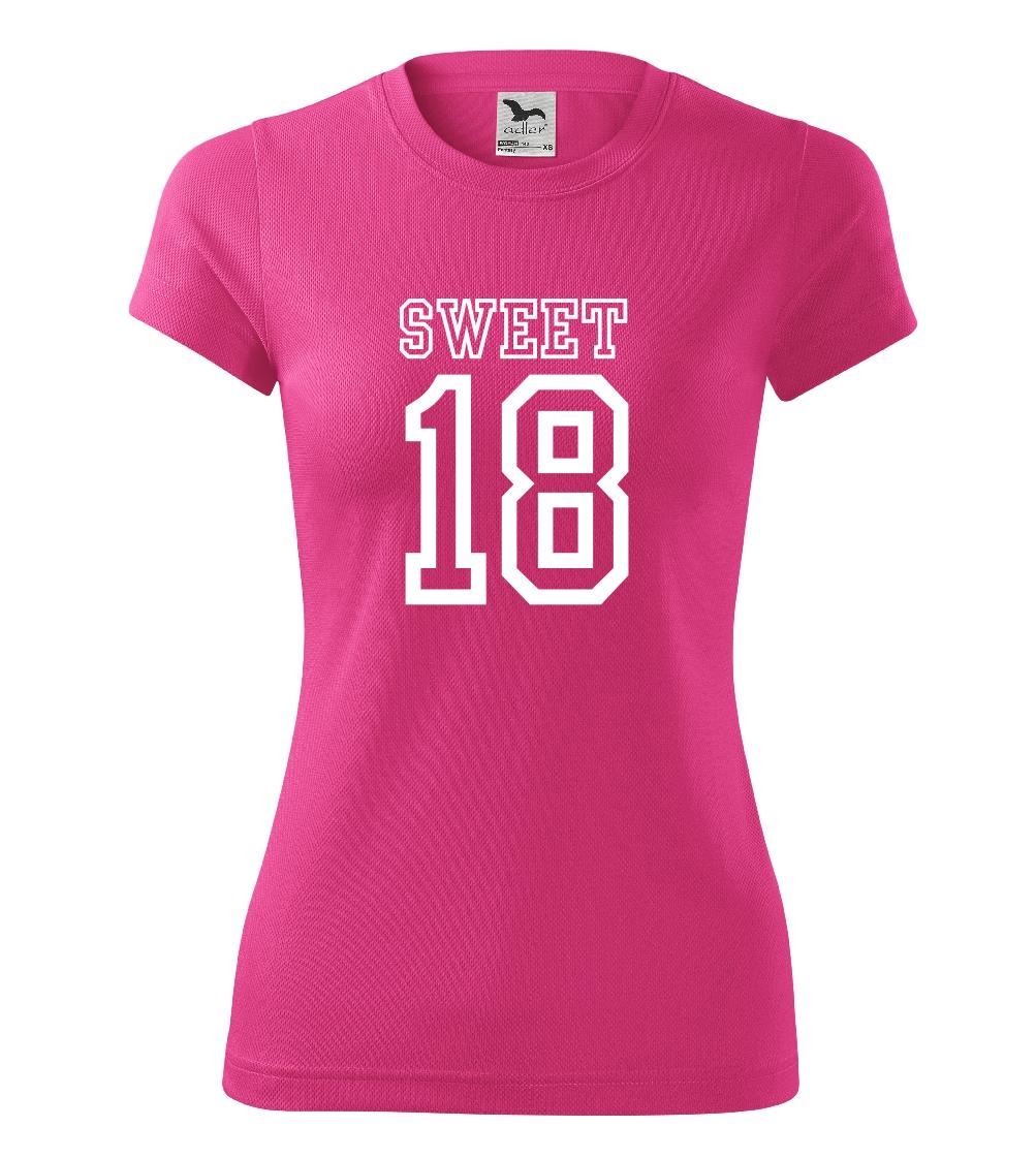 Narozeninové triko pro holku, která slaví 18 narozeniny. Triko pro oslavenkyni, která slaví jubileum 18 let. Dárek pro holku k osmnáctinám.