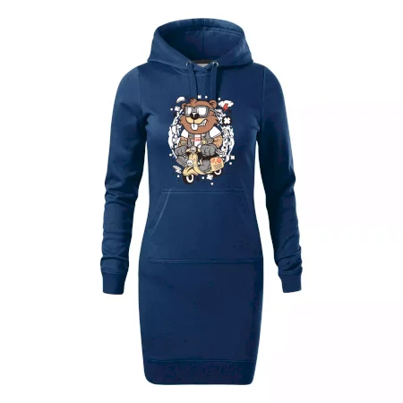 Dámské mikinové šaty MALFINI Snap 419 jsou ideální volbou pro ženy, které hledají pohodlný a stylový kousek pro volný čas nebo každodenní nošení. Lehce vypasovaný střih s bočními švy podtrhuje ženskou siluetu, zatímco kapuce s podšívkou a stahovací šňůrkou dodává ležérní vzhled. Šaty mají délku nad kolena a jsou vybaveny nakládanou kapsou ve stylu „klokanky“. Materiál je měkký a příjemný na dotek díky směsi bavlny a polyesteru s nepočesanou vnitřní stranou.