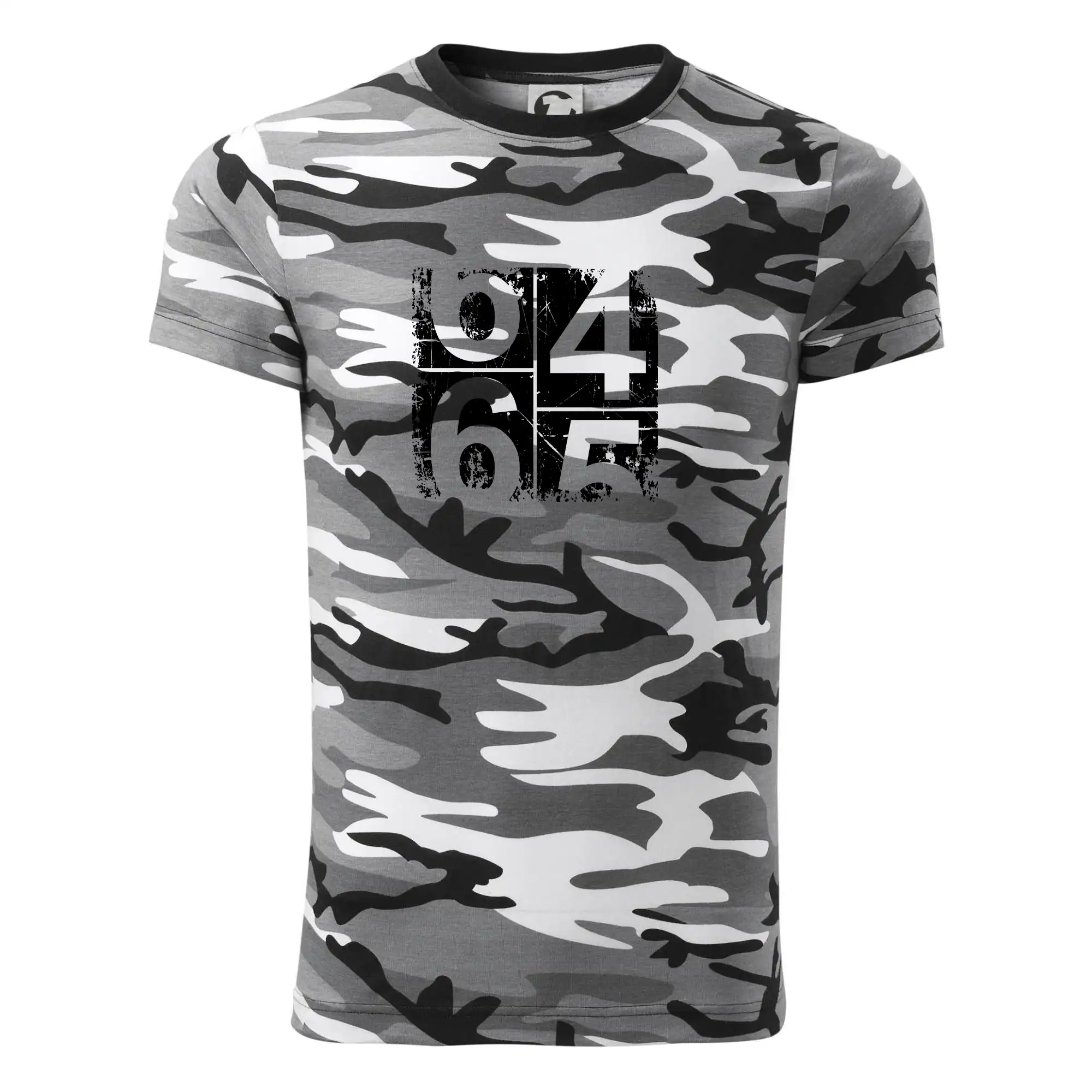 Tričko střední gramáže v barvách camouflage. Střih s bočními švy. Lem průkrčníku ze žebrového úpletu s přídavkem 5 % elastanu. Vnitřní část zadního průkrčníku začištěna páskou v barvě camouflage.