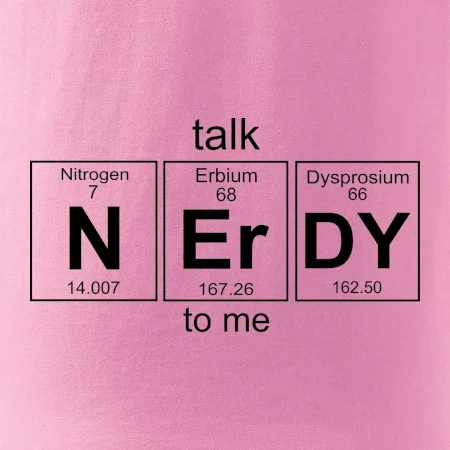 Trička a mikiny pro milovníky chemie, originálních věcí a humoru. Periodické tabulky lze provést v jakékoliv variantě! Pokud jsi nerd, tohle triko pro tebe bude to pravé. Triko, na kterém je periodická tabulka prvků, je vhodný dárek pro každého nerda a geeka. Triko pro nerda s nápisem talk NErDY to me vytvořeným z prvků periodické tabulky.