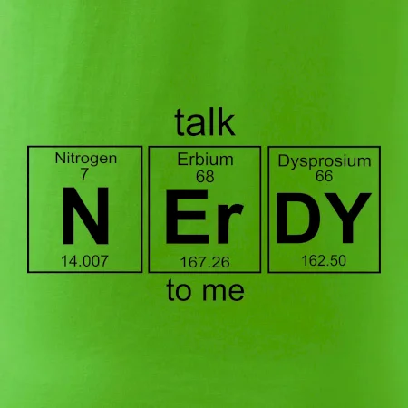 Trička a mikiny pro milovníky chemie, originálních věcí a humoru. Periodické tabulky lze provést v jakékoliv variantě! Pokud jsi nerd, tohle triko pro tebe bude to pravé. Triko, na kterém je periodická tabulka prvků, je vhodný dárek pro každého nerda a geeka. Triko pro nerda s nápisem talk NErDY to me vytvořeným z prvků periodické tabulky.