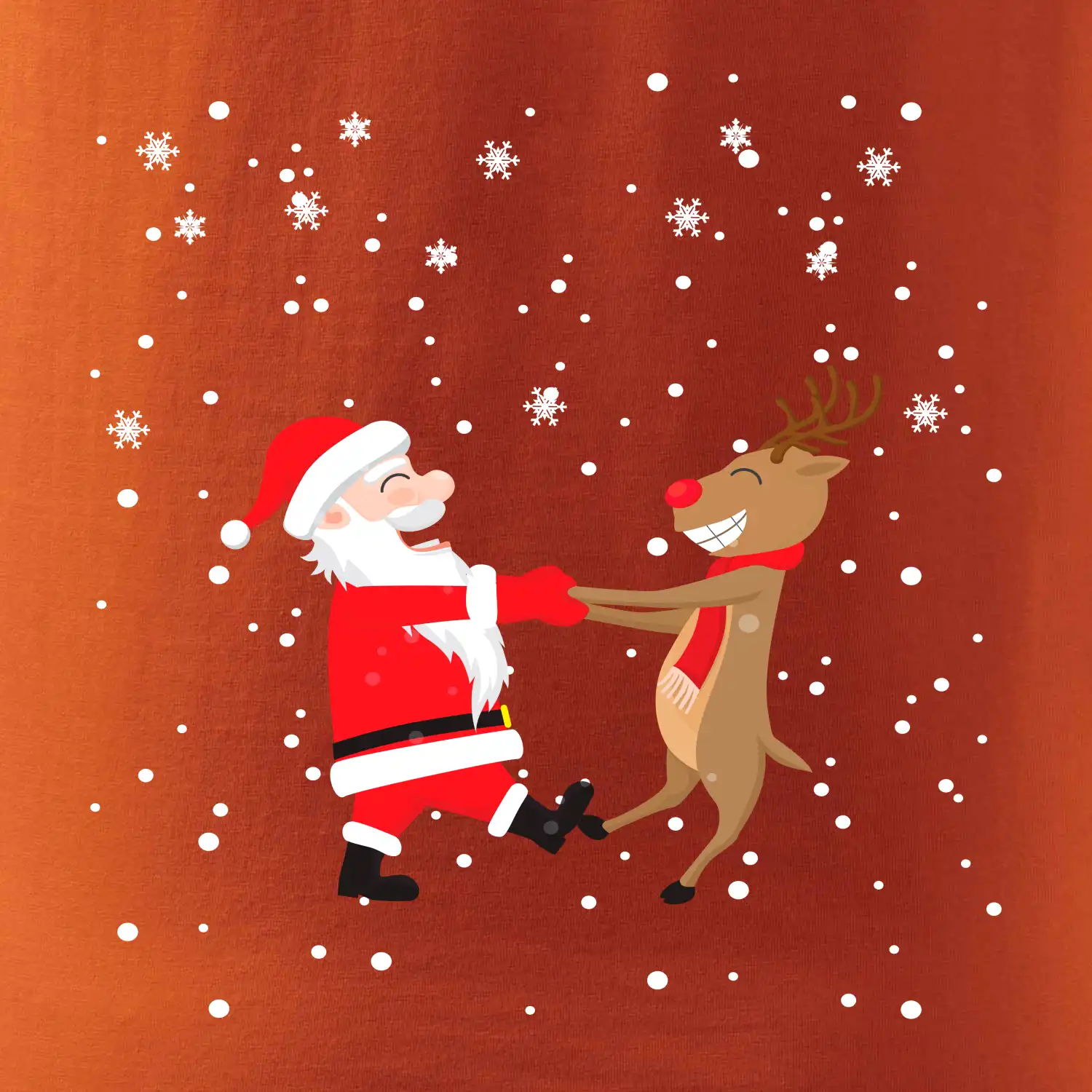 Nejlepší kamarádi jsou Santa a jeho sobi. Vánoční motiv jako skvělý ohoz pod stromeček. Oblečení na Vánoce.