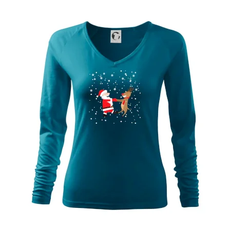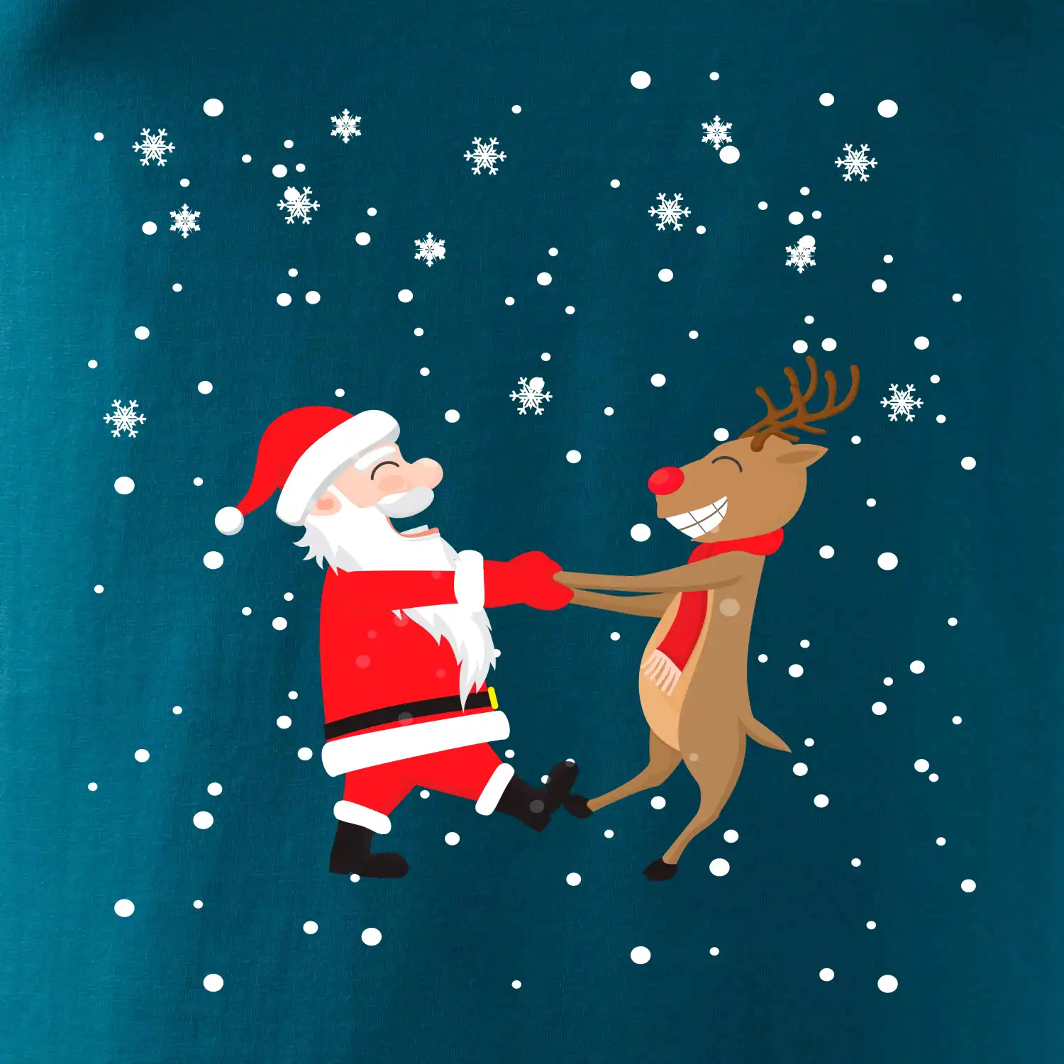 Nejlepší kamarádi jsou Santa a jeho sobi. Vánoční motiv jako skvělý ohoz pod stromeček. Oblečení na Vánoce.