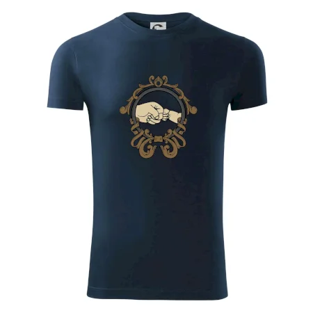 Pánské tričko s krátkým rukávem vyšší gramáže. Módní, přiléhavý střih s bočními švy. Úzký lem průkrčníku ze žebrového úpletu s přídavkem 5 % elastanu. Vnitřní část zadního průkrčníku začištěna páskou. Zpevněný ramenní šev.