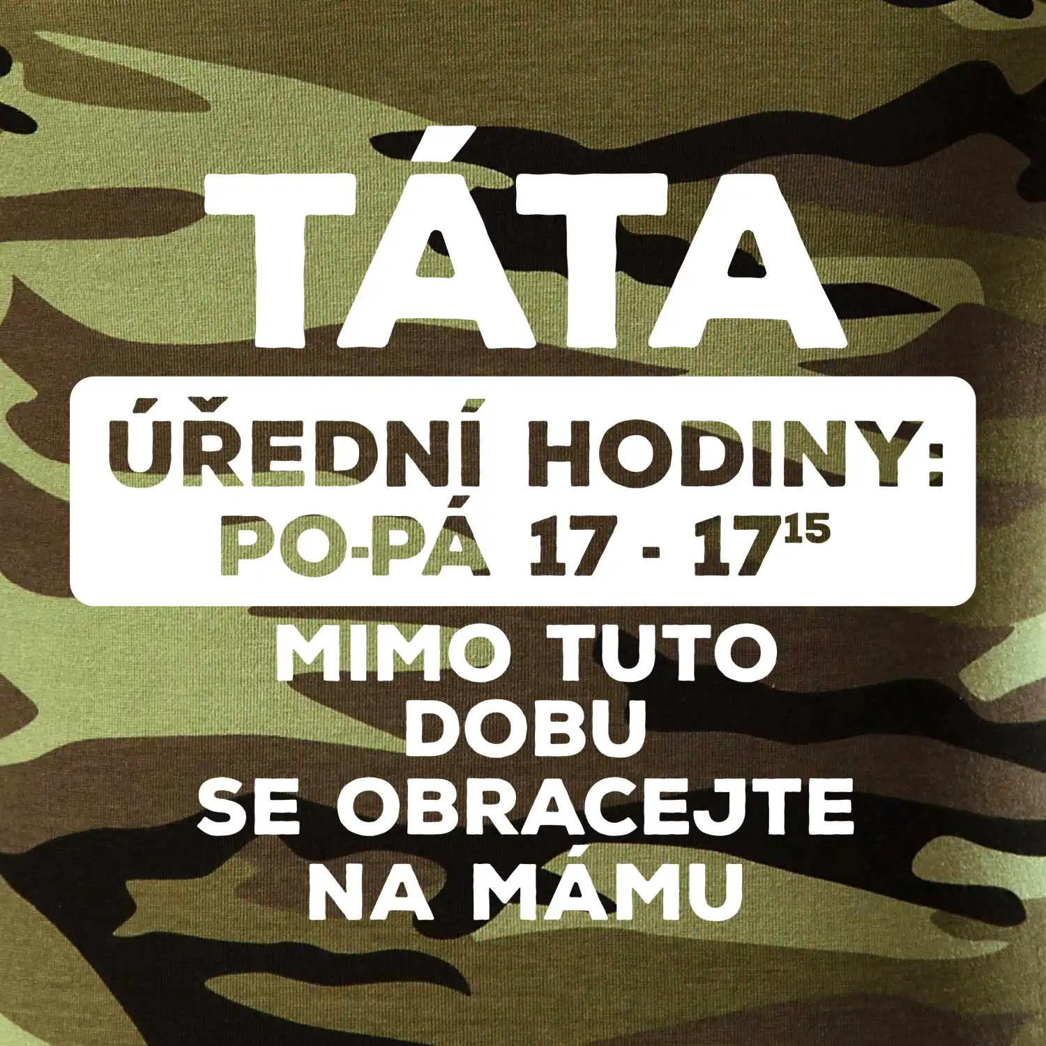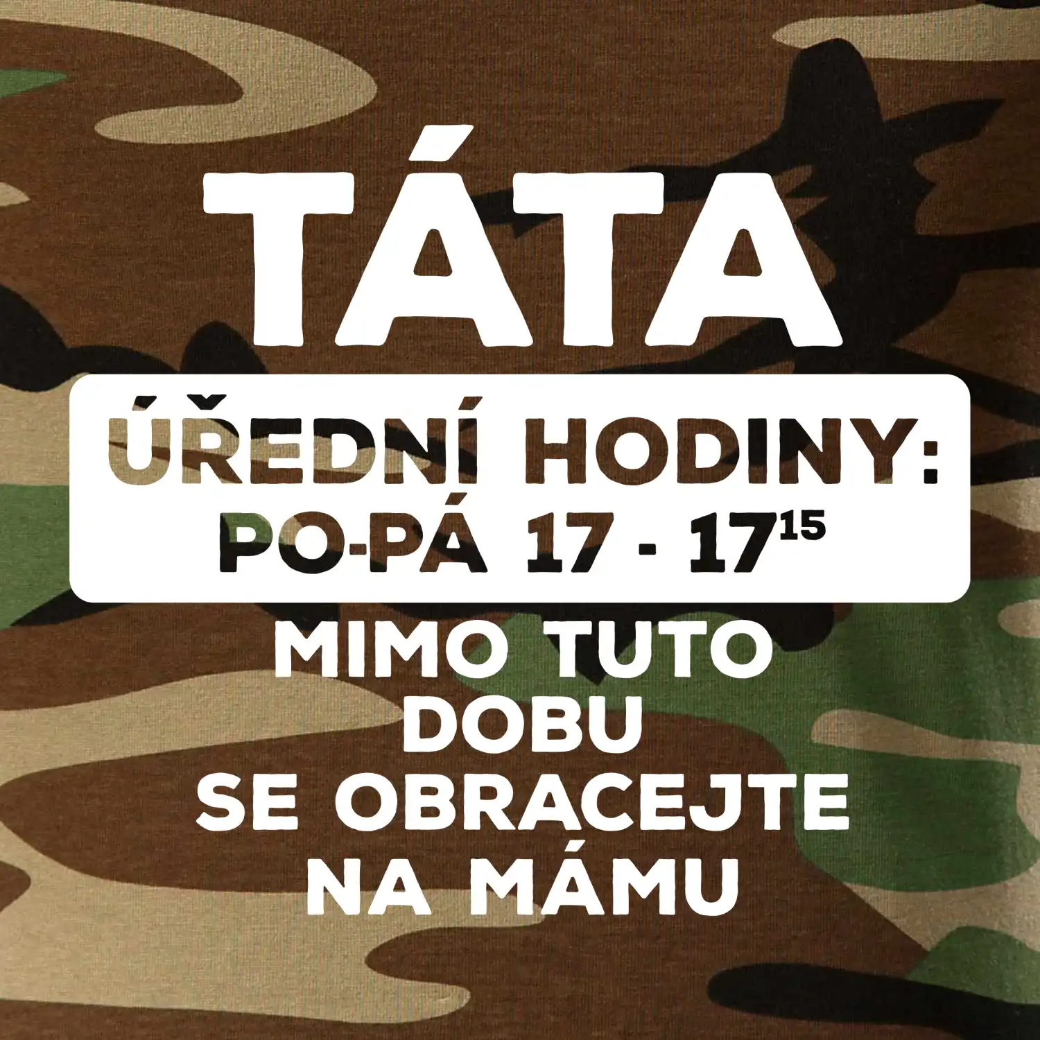 Táta a úřední hodiny. Vtipné pánské tričko pro šéfa rodiny. Vyberte barvu a velikost, klidně doplňte jméno. Skvělý dárek k narozeninám či na Den otců. ✓