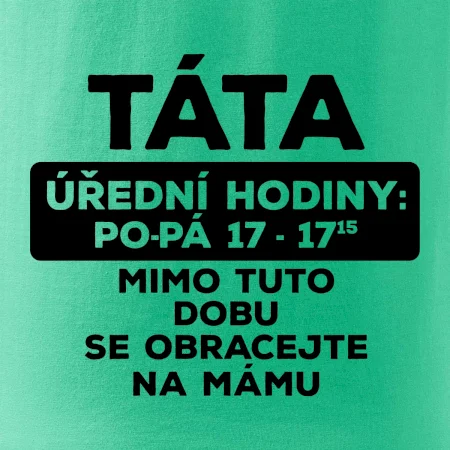 Táta a úřední hodiny. Vtipné pánské tričko pro šéfa rodiny. Vyberte barvu a velikost, klidně doplňte jméno. Skvělý dárek k narozeninám či na Den otců. ✓