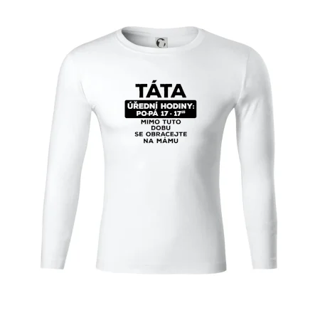 Táta a úřední hodiny. Vtipné pánské tričko pro šéfa rodiny. Vyberte barvu a velikost, klidně doplňte jméno. Skvělý dárek k narozeninám či na Den otců. ✓