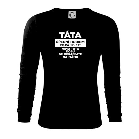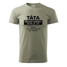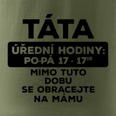 Táta a úřední hodiny. Vtipné pánské tričko pro šéfa rodiny. Vyberte barvu a velikost, klidně doplňte jméno. Skvělý dárek k narozeninám či na Den otců. ✓